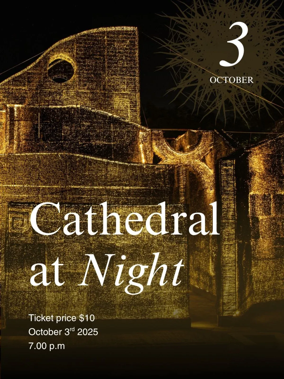 Discover the Cathedral of Thorns by Night, open every first Friday of the month at 7:30 PM. Wander through the illuminated labyrinth, explore exhibitions by local and international artists, and enjoy live music or cultural performances. Book a tour to experience it up close or support the movement with a donation.