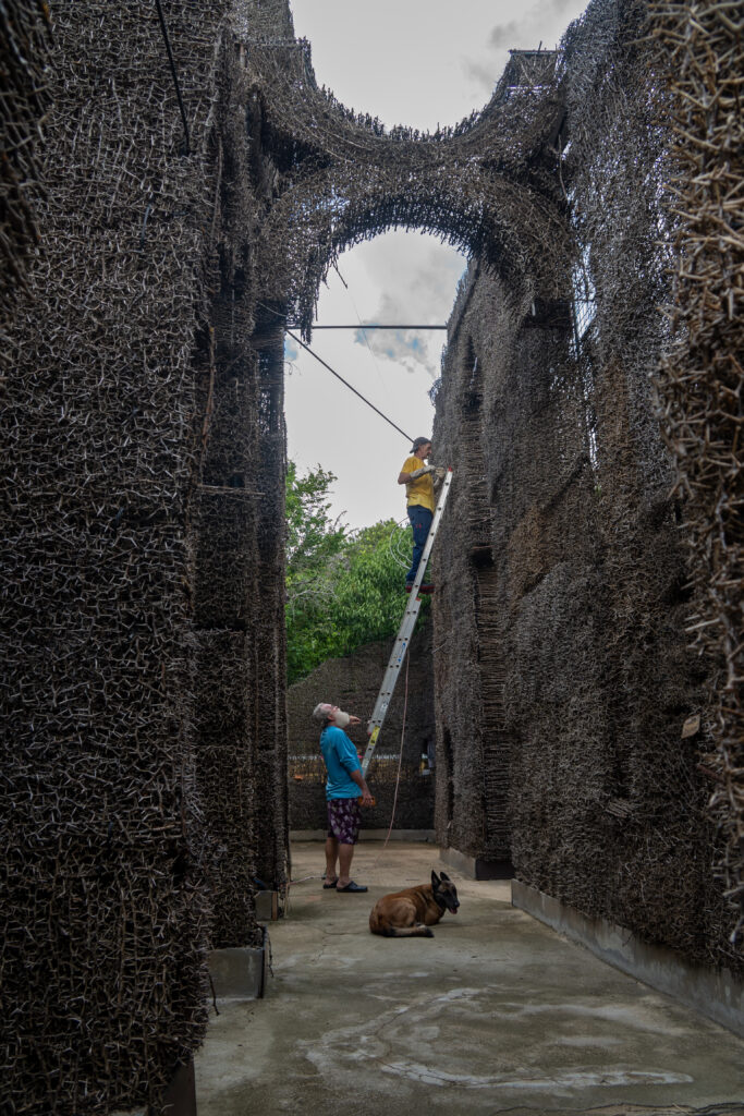 Take a deeper look into how the Cathedral of Thorns was built—thorn by thorn. Learn about the symbolism behind the structure, the local youth who helped create it, and the vision of artist Herman van Bergen.