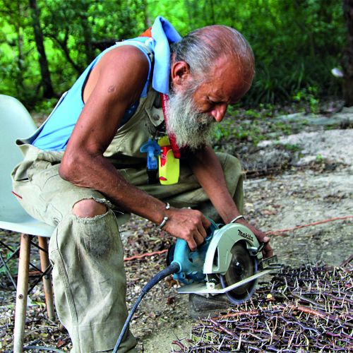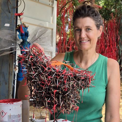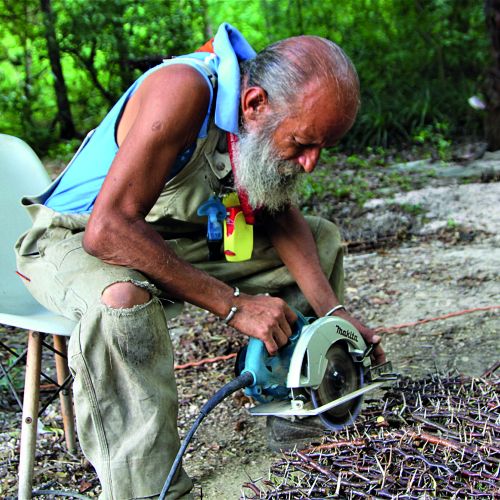 Van Bergen is particularly recognized for his ‘sumpiña’ (thorn) art, which earned a nomination for the Curaçao Innovation Prize in 2003. His unique sculptures and lamps, crafted from local thorn bushes, have been exhibited in prestigious galleries across Curaçao, the Caribbean, South America, the U.S., and Europe. A major milestone in his career is The Cathedral of Thorns, an immersive installation showcasing his mastery of natural materials.